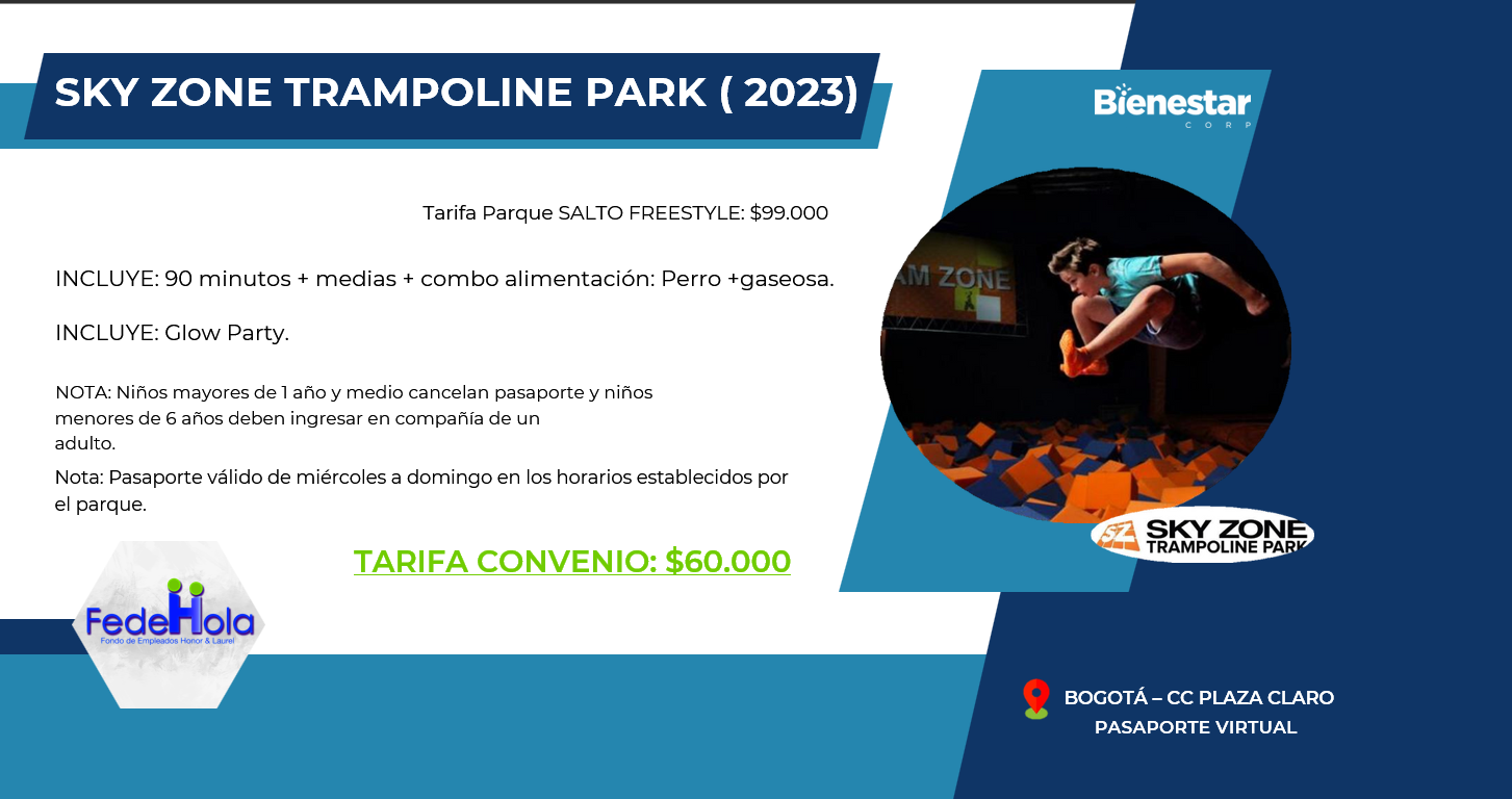 CONVENIOS RECREACION Time Spa ¡Clic Aquí! Royal Films ¡Clic Aquí! Expreso Viajes CineMark ¡Clic Aquí! Cine Colombia ¡Clic Aquí! Multiparque ¡Clic Aquí! Sky Zone ¡Clic Aquí! Mundo Aventura ¡Clic Aquí! Jaime Duque ¡Clic Aquí! Mas Proximamente